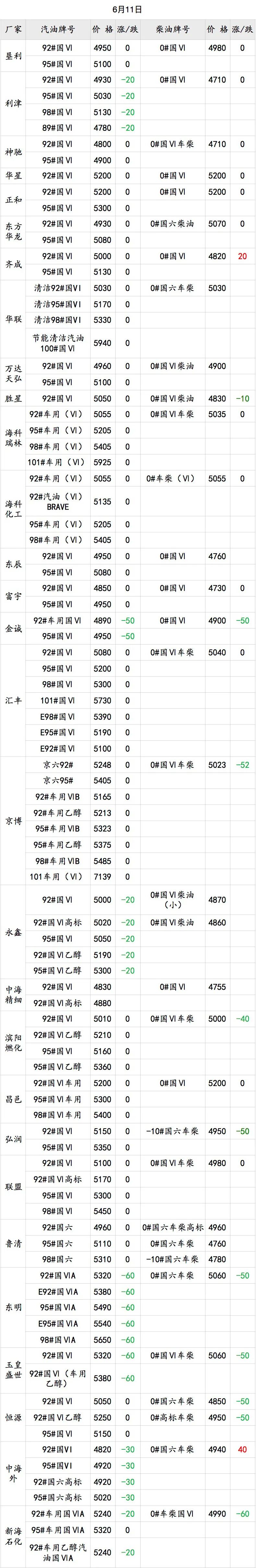 截至6月11日天,山東地煉92#汽油市場價4986元/噸,較上周期上漲79元/噸;0#柴油市場價格4898元/噸,較上周期下跌17元/噸;一次常減壓裝置平均開工負荷為75.29%,與上周相比下跌1.13個百分點。